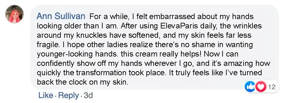Day 7: I’d been applying ElevaParis™ morning and night. My under-eye bags were visibly less puffy. Even my husband noticed: "You look rested," he said. And for the first time, I actually felt it, too.
